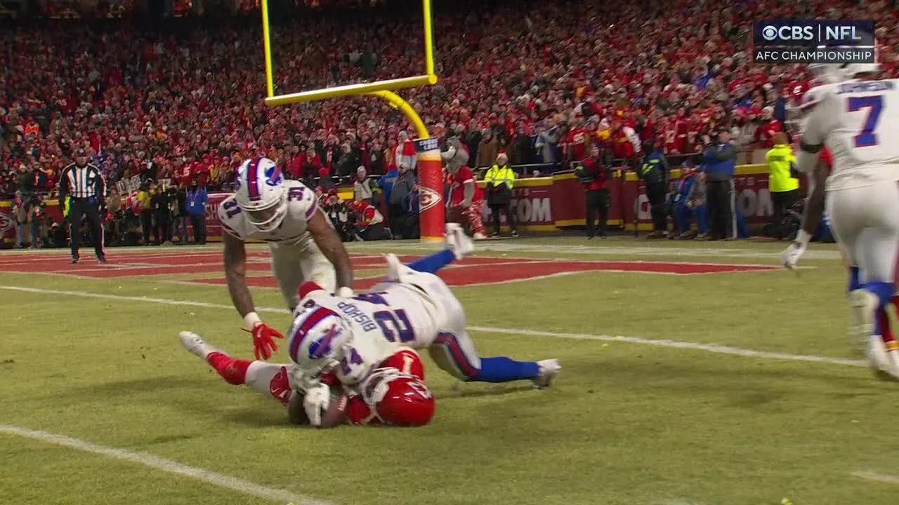 The Chiefs stopping Josh Allen and the Bills, who needed to get to the 40-yard line to get a first down. This was upheld by officials after review.